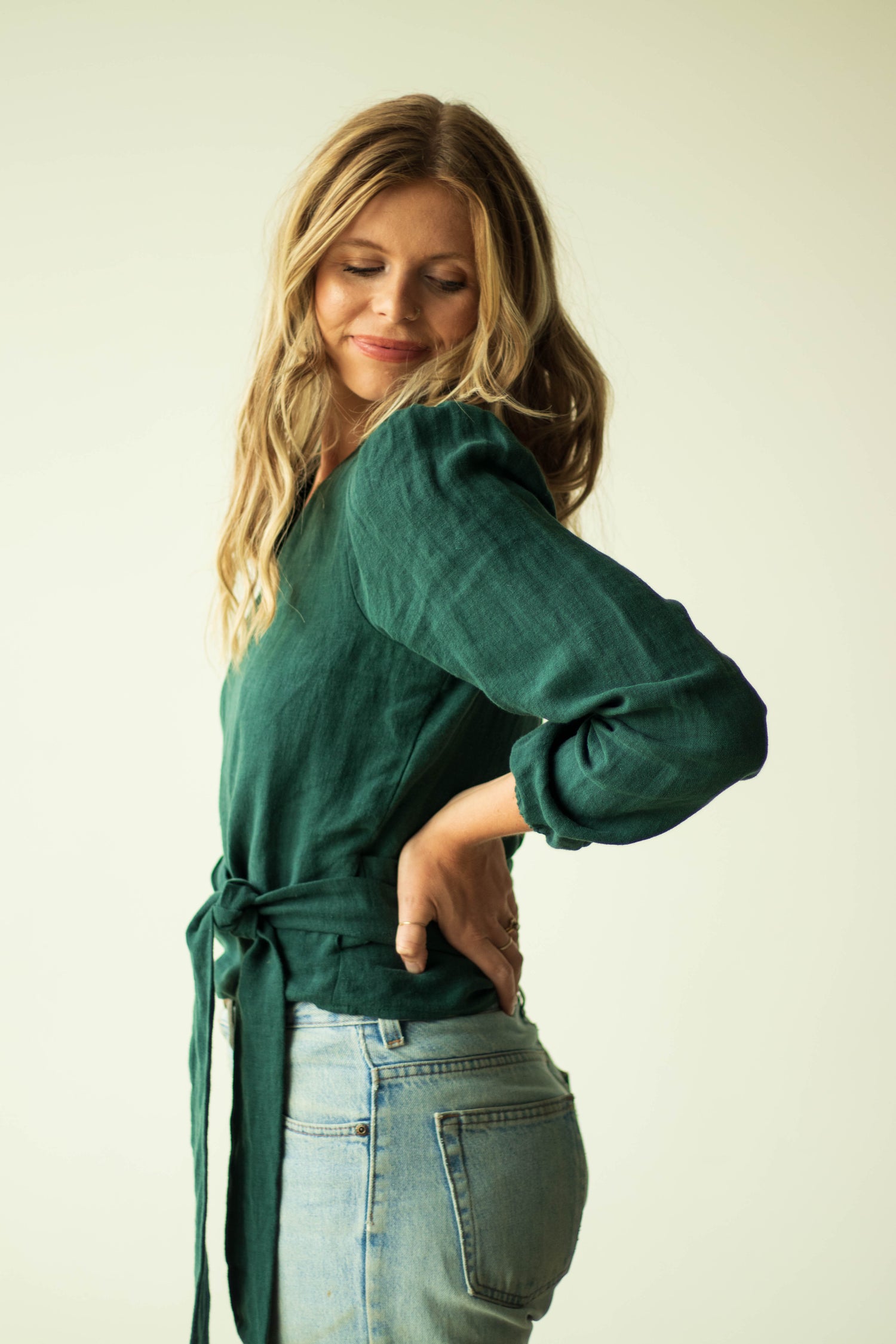 The I AM CAPABLE Wrap Top features a wrap design with slightly puffed long sleeves and an elastic cuff. Romantic, comfy and versatile, this top effortlessly dresses up any outfit.