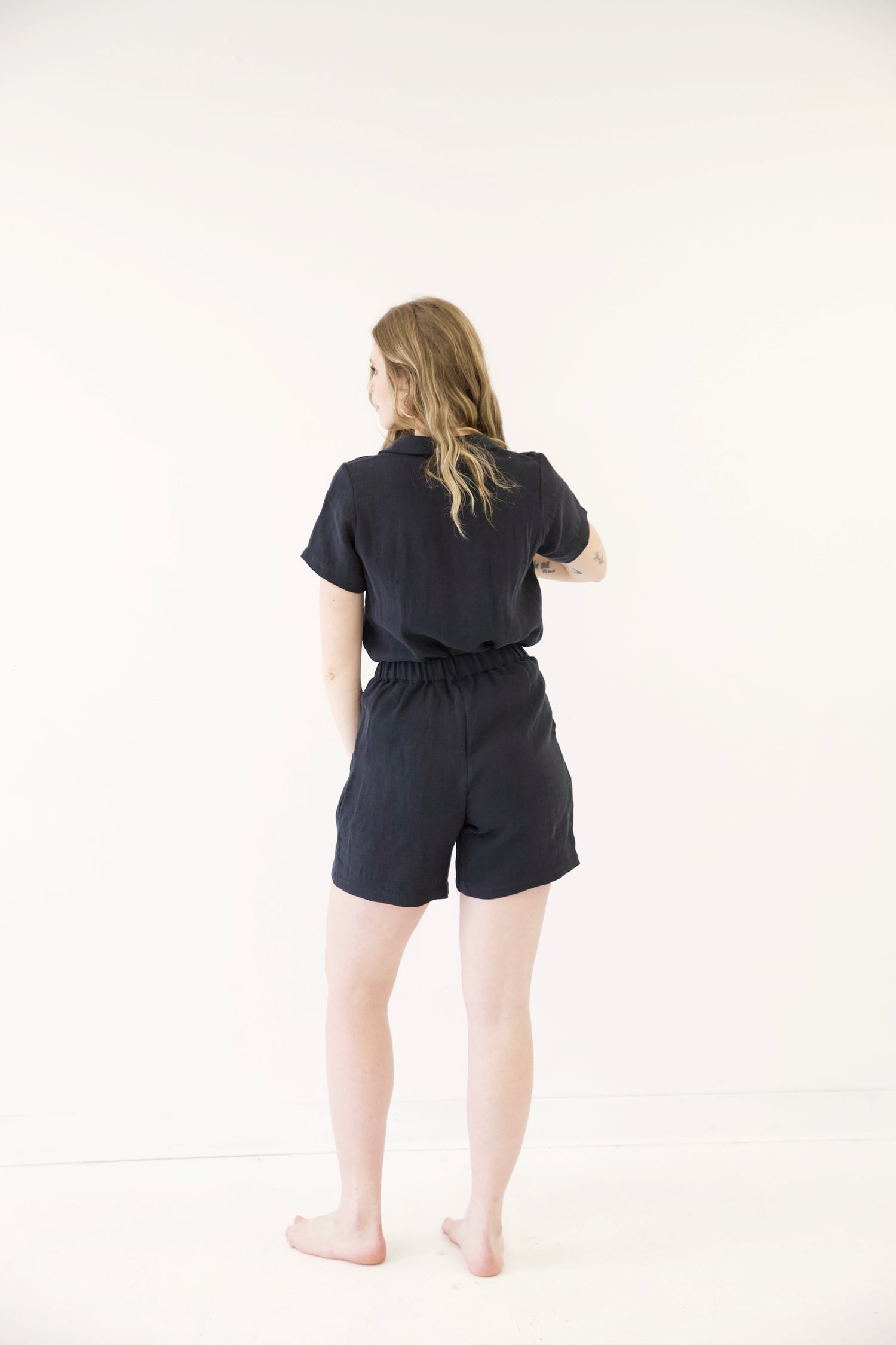 - As linen is a natural fabric the garment will experience slight shrinkage after the first wash (about 0.5 inches for the shorts). But don't worry we have designed the garments with this in mind.