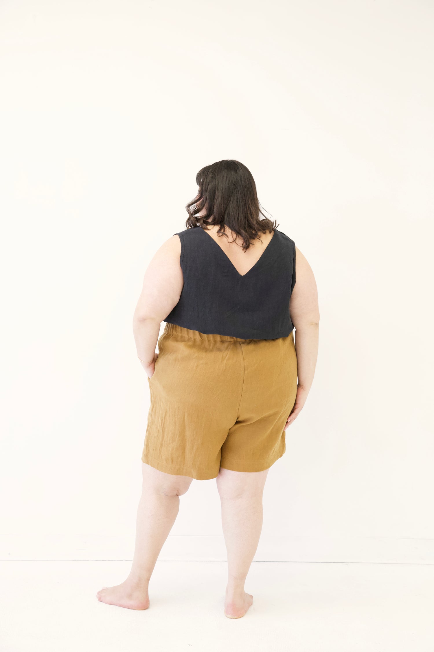 The I AM STRONG Shorts (based off of the I AM STRONG Trousers) feature a high waist, front pleats, comfy elastic waistband at the back and large deep pockets. These timeless shorts can be effortlessly dressed up or down for any occasion.