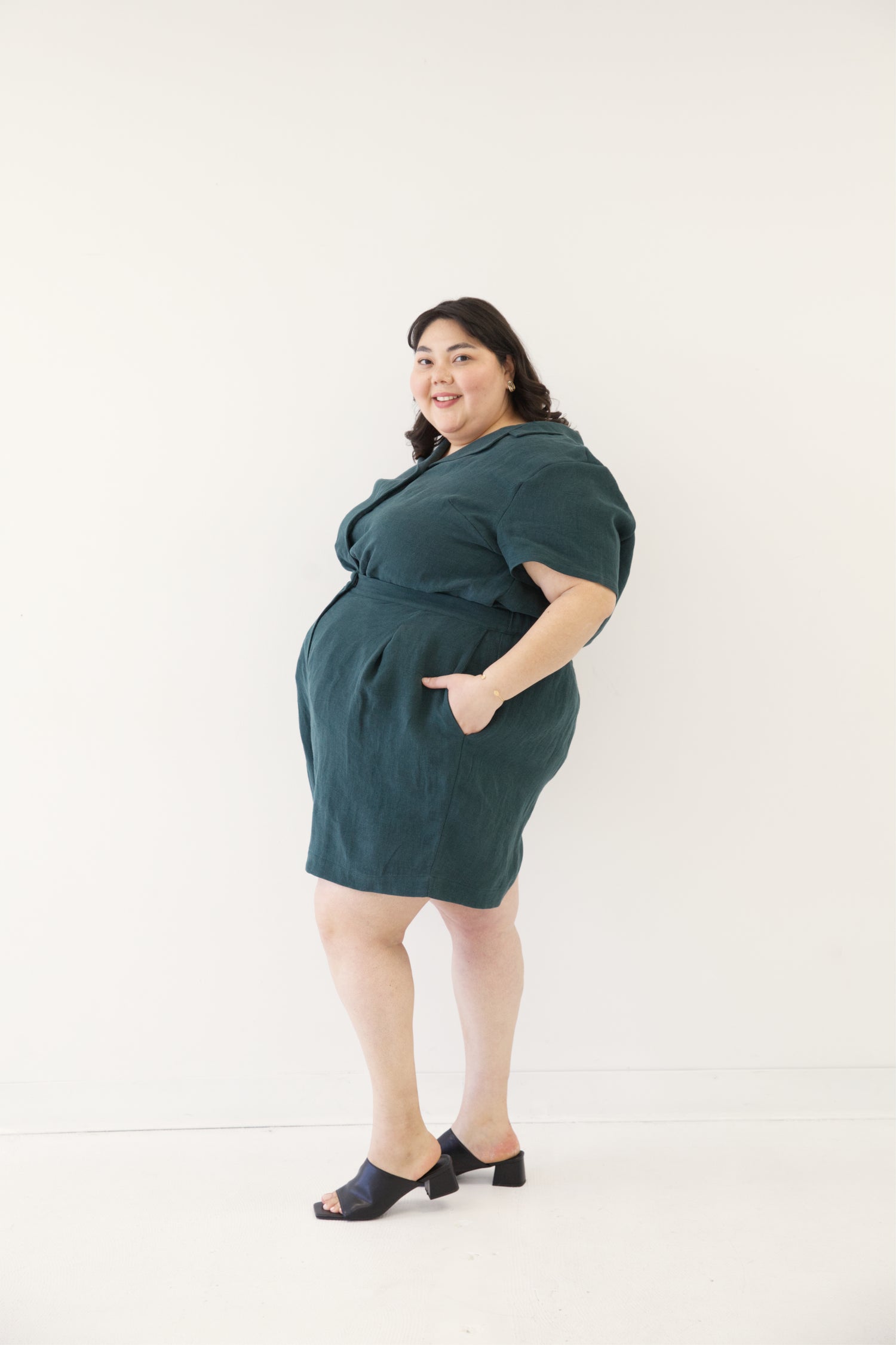 The I AM STRONG Shorts (based off of the I AM STRONG Trousers) feature a high waist, front pleats, comfy elastic waistband at the back and large deep pockets. These timeless shorts can be effortlessly dressed up or down for any occasion.