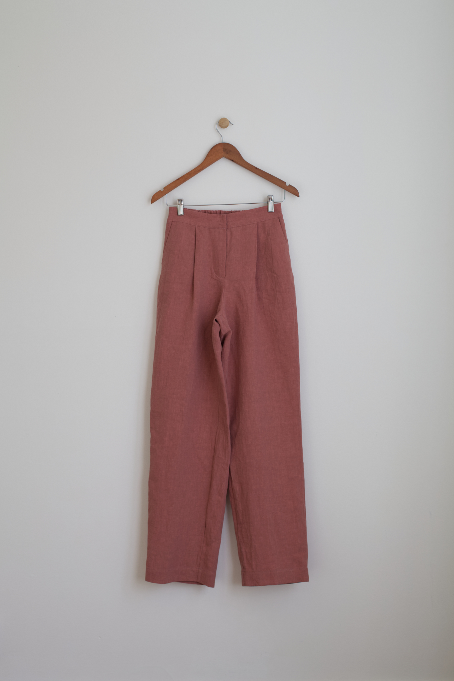 These trousers are the same as the I AM STRONG Trousers in heavy-weight linen twill but with a slightly slimmed out leg.